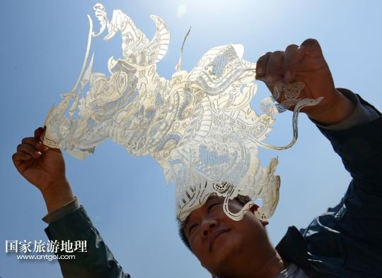國家旅游地理 河北唐山4月2日訊 郭寶在檢查一件皮影藝術品的雕刻質量(3月30日攝)。河北省遷安市趙店子鎮(zhèn)馬古寺村村民郭寶自幼喜歡皮影雕刻,師承當地雕刻藝人王珍老先生,他雕刻的影人造型古樸、工藝精細,深受皮影收藏愛好者的歡迎。2003年,郭寶成立了“郭寶皮影傳承工作室”,并從村里招來20多位喜歡皮影藝術的農民專門從事皮影雕刻。經過幾年的發(fā)展,如今郭寶皮影工作室開發(fā)設計皮影工藝品3000余種,在傳承保護唐山皮影的同時還獲得了豐厚的收入。 /新華社記者楊世堯攝