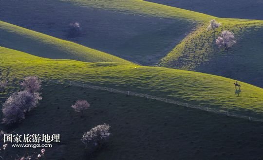國(guó)家旅游地理 新疆伊犁4月12日訊 新源縣吐?tīng)柛l(xiāng)雪山映襯下的一棵杏樹(shù)(4月9日攝)。進(jìn)入四月,位于新疆伊犁哈薩克自治州新源縣吐?tīng)柛l(xiāng)的原始杏花林進(jìn)入盛花期,杏花林鑲嵌在山間,猶如一幅美妙的畫(huà)卷。 /新華社記者 趙戈 攝