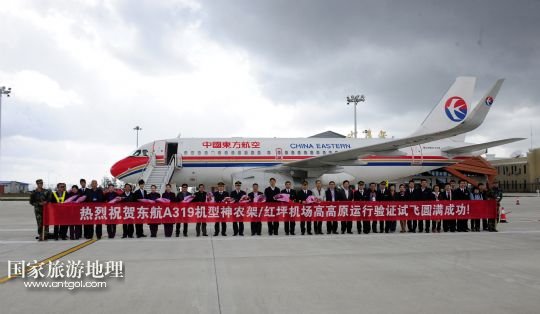 國家旅游地理 湖北神農(nóng)架4月28日訊 4月28日,試飛成功后機(jī)組人員在飛機(jī)前合影留念。當(dāng)日,東航A319機(jī)型在神農(nóng)架紅坪機(jī)場通過高高原運(yùn)行驗(yàn)證,試飛成功。神農(nóng)架機(jī)場海拔高度2580米,是華中地區(qū)海拔最高的機(jī)場,將于5月8日正式通航,首飛東方航空公司的上海—武漢—神農(nóng)架航線。從武漢到神農(nóng)架的旅途時間將由過去乘汽車9小時縮短至50分鐘。 /新華社記者 郝同前攝