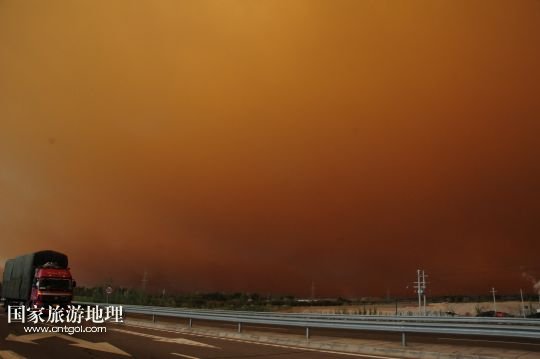 國(guó)家旅游地理 甘肅玉門5月23日訊 5月23日,在甘肅玉門市,突如其來(lái)的沙塵籠罩了整個(gè)城市。當(dāng)日上午,受新疆低槽冷空氣的影響,甘肅玉門境內(nèi)天空出現(xiàn)罕見(jiàn)的云層奇景和沙塵天氣,原本非常晴朗的藍(lán)天,霎時(shí)天昏地暗,同時(shí)伴有6至7級(jí)西風(fēng),能見(jiàn)度只有500米。新華社發(fā)(楊旭升 宋常青 攝)