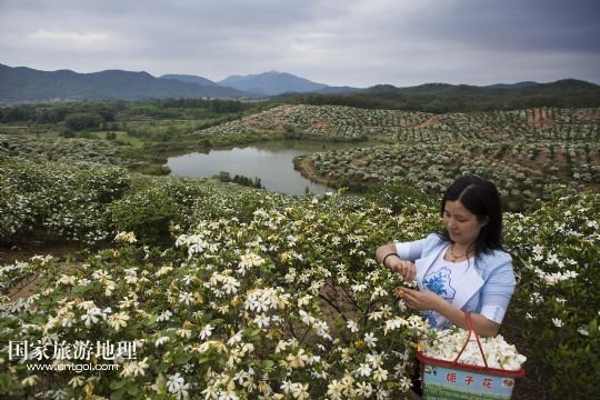 國家旅游地理 江西九江5月24日訊 5月24日,游客在黃梔子種植基地采摘梔子花。小滿時節(jié),在位于鄱陽湖畔的江西省九江市都昌縣土塘鎮(zhèn)潭湖村的坡嶺上,春輝黃梔子專業(yè)合作社6個種植基地的兩千多畝黃梔子全面進入盛花期,種植園內(nèi)芳香四溢。黃梔子是傳統(tǒng)中藥材,花朵可觀賞、食用,果實可用于醫(yī)藥、染色、化妝品等領(lǐng)域。成立于2007年的都昌春輝黃梔子農(nóng)民專業(yè)合作社近年來致力于實施科技推廣、標(biāo)準(zhǔn)化種植和專業(yè)化經(jīng)營黃梔子,將黃梔子從“飄香”經(jīng)濟延伸到“染色”“藥用”深加工,進軍省內(nèi)外市場。 /新華社發(fā)(傅建斌 攝)