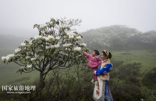 國家旅游地理 四川阿壩州6月12日訊 6月10日,一對母女觀賞夾金山上盛開的高山杜鵑。夏天的夾金山,草甸泛綠、百花盛開,雨后云霧繚繞、景色宜人。夾金山屬邛崍山脈,位于四川省阿壩州小金縣和雅安市寶興縣交界處,面積達2萬多公頃,是國家森林公園,也是中國工農(nóng)紅軍萬里長征翻越的第一座大雪山。 /新華社記者江宏景攝
