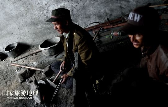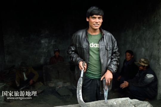 7月17日,扎西頓珠(左)、索朗次仁在達曼村的鐵匠鋪內(nèi)打鐵。