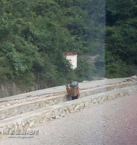 這是在前往平塘大射電望遠鏡建造地址的路上拍攝的。這是一位走在路邊水渠里的大媽,身上背著背簍,里面裝了一些撿來的柴火和其他一些東西。因為山路比較窄和正在修路的原因,大媽一直在水渠中行走,以避讓路上的偶爾經(jīng)過的車輛。在山區(qū)里交通不便,一些山上也零星的住著一些居民,他們遠離群居區(qū),依然過著比較原始的山居生活。