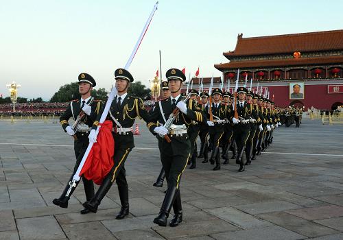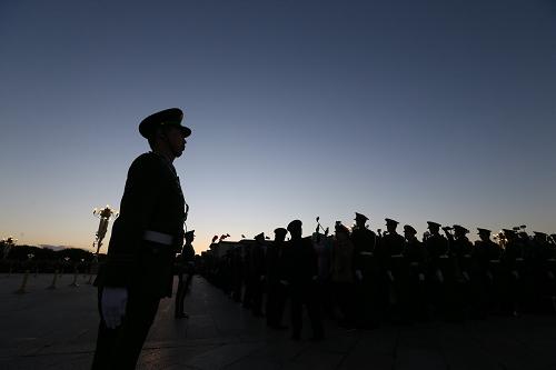 10月1日清晨,武警天安門支隊的官兵在執(zhí)勤。新華社記者 邢廣利 攝