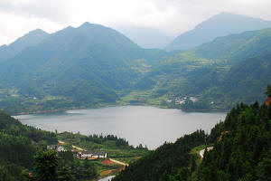 泛舟湖上,但見山環(huán)水繞,峰回路轉(zhuǎn)。放眼望去,其山巒遠(yuǎn)近高低,有翠屏而立者,有碧螺而旋者,有柱石擎天者,有丘陵迤儷者。如遇晴日,藍(lán)天白云,碧樹紅花,映入湖面,靜則含蓄,動(dòng)則朦朧。間以飛泉滴流,鳥鳴魚躍,詩(shī)情畫意,油然而生。湖壩之下,又是另一番景色。亂石突兀,三里成堆,溪流汩汩,清泉淙淙,游人入其間,采一束野花,掬一捧河水,或臥或息,或濯或浴,仰視云海變幻,聚散離合,無(wú)不心曠神怡。