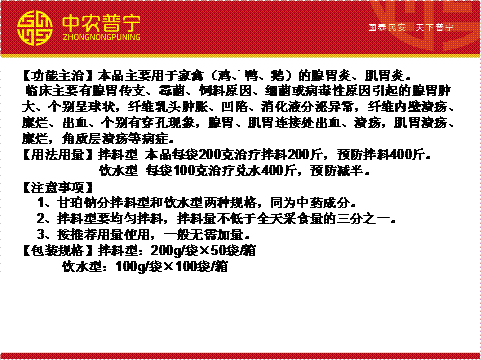 抗病毒類呼吸道類腸道類球蟲類腎病類育雛類輸卵管炎類大腸桿菌漿膜炎類營養(yǎng)類增蛋類解暑抗熱類消毒劑類肌胃腺胃炎類混感類真菌霉菌類豬用產(chǎn)品熱銷產(chǎn)品產(chǎn)品配伍方案
