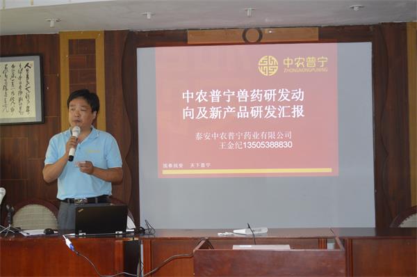 隨后公司技術(shù)研發(fā)總監(jiān)王金紀(jì)先生做了具有指導(dǎo)性意義報告,王總對當(dāng)前國家對獸藥企業(yè)的研發(fā)生產(chǎn)法規(guī)、獸藥研發(fā)形勢、行業(yè)發(fā)展現(xiàn)狀、公司現(xiàn)有產(chǎn)品情況給予了詳細(xì)說明。